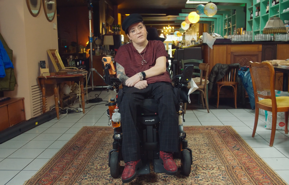 Dans la vraie vie, Marie s’appelle Carine. Un accident de voiture l’a rendue tétraplégique. Elle ne peut désormais plus danser, elle qui aimait tant cela! Autrefois, c’était une grande fêtarde. Elle faisait même partie d’un groupe de musique, elle adorait sortir! Elle ne considère pas son fauteuil roulant comme un obstacle, mais plutôt comme une aide au quotidien.